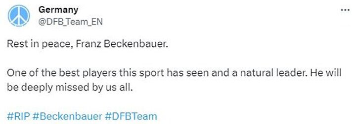 The German football team's English account wrote: 'Rest in peace, Franz Beckenbauer.