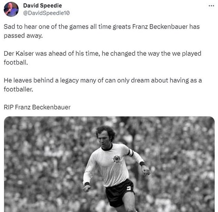 Scottish international David Speedie wrote: 'Sad to hear one of the games all time greats Franz Beckenbauer has passed away.