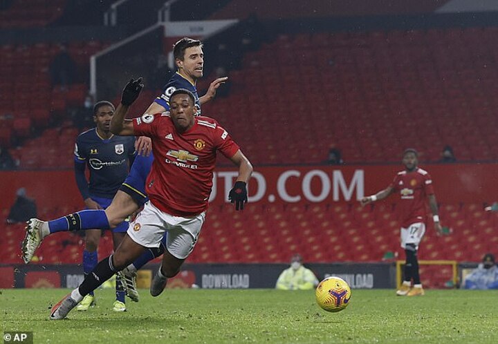 The Saints defender was even caught on camera after the came saying ‘Martial said it’s not a foul!'