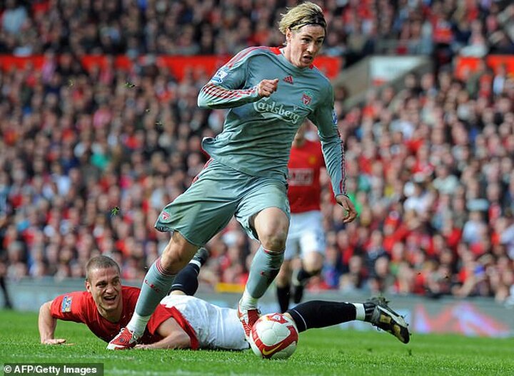 Torres gave Vidic a torrid time in Liverpool's famous 4-1 win at Old Trafford in 2009, leaving the iconic defender on his backside as the Reds run riot at the Theatre of Dreams.