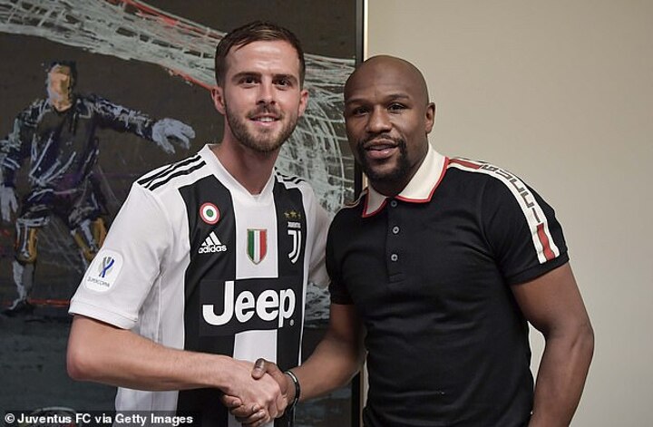 Champions celebrated together as undefeated boxing great Floyd Mayweather Jr joined Cristiano Ronaldo and his Juventus team-mates in the dressing room following their Italian Super Cup win over AC Milan.