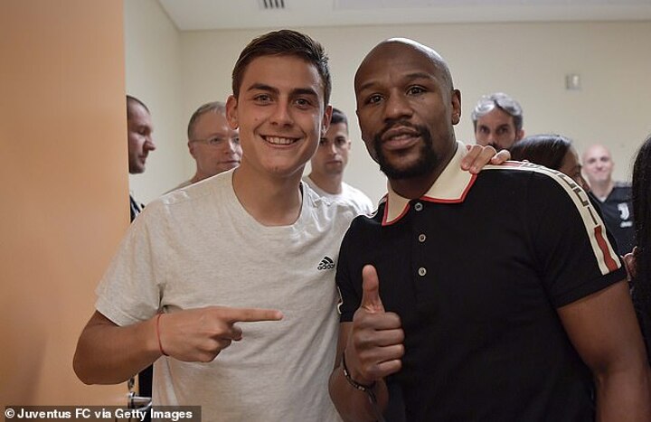 Mayweather and his entourage popped in to see the jubilant Juve players and the American couldn't resist getting his hands on the handsome silver trophy.
