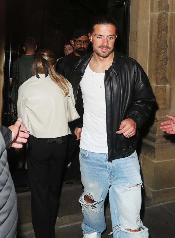 Jack Grealish also caught the eye in a leather jacket, while the man of the hour De Bruyne wore a smart navy jacket and trousers with Doc Martens.
