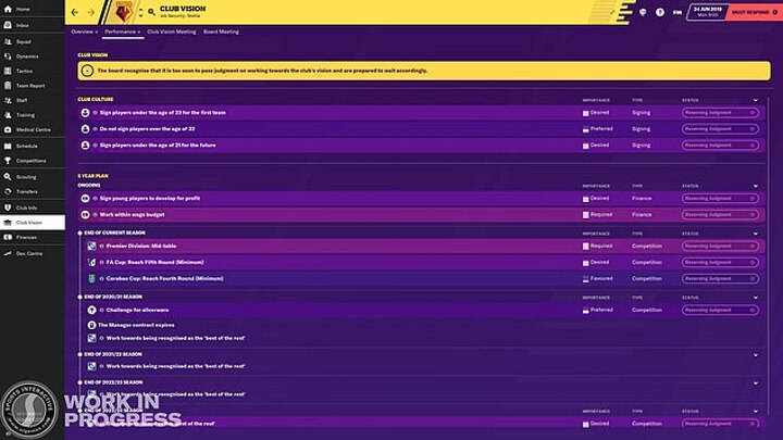 There's plenty more to note too. The club vision section gives you goals for five years into the future and means that from day one you'll already be looking for the next big thing, even if the current thing seems big enough for the task at hand.