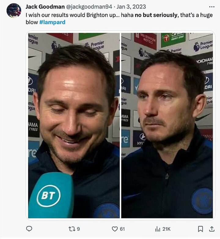It even took Lampard less than one hour into his spell as Chelsea caretaker manager last year to pull out the hilarious expression, and he admitted that his daughter regularly sends the memes of his funny expressions.