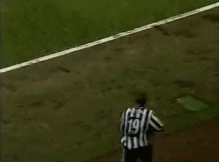 Indeed, Gilles Grimandi's “tackle” – if you can call it that – thwarted Davids at the last moment. Grimandi's deadpan reaction makes the moment even funnier.