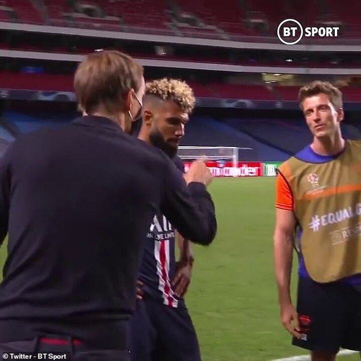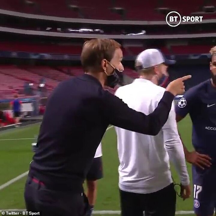 Thomas Tuchel was involved in a furious bust-up on the pitch with the opposition bench in the moments after PSG reached their first ever Champions League final.