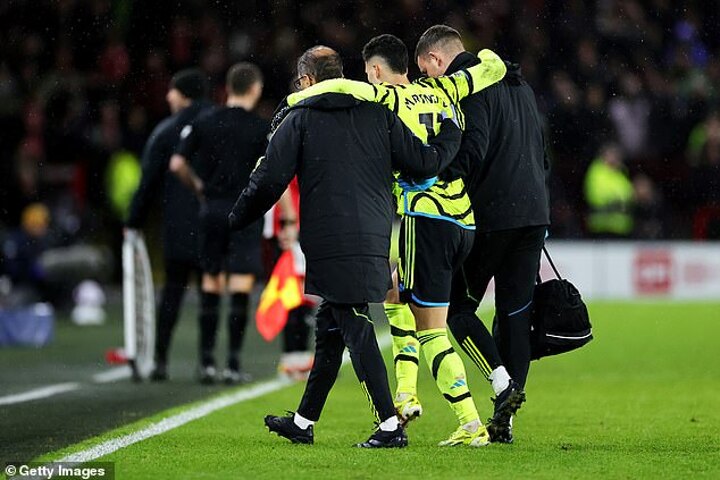 Martinelli brought up his eighth goal of the season in all competitions by striking on-target in the 15th minute, but was later subbed off amid concerns over his fitness.