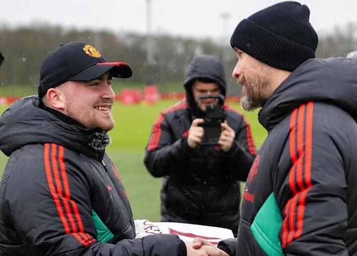 Alejandro Garnacho well and truly made Luke Littler's day as the teenage darts sensation visited his heroes at Carrington training ground.