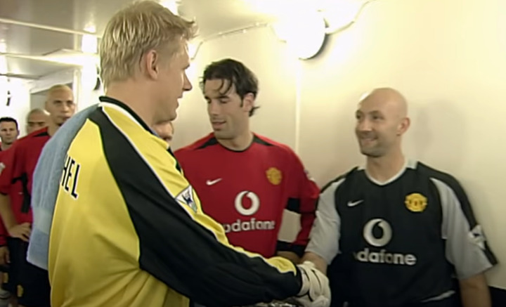 So in November 2002, when Schmeichel played against Man United for the first time as a City player there was a very awkward exchange.
