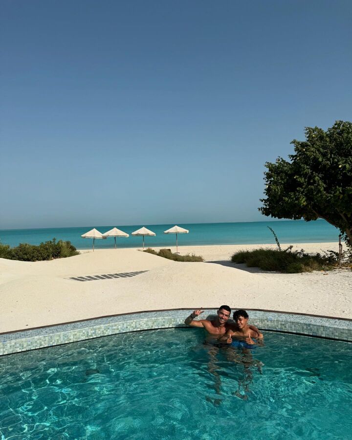 The Al Nassr superstar shared a photo of himself posing in front of the crystal clear waters with the caption "recharging".