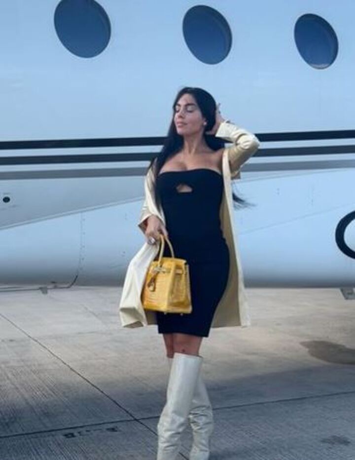 Georgina shared snaps of herself in front of and on board the luxury private jet, plus one of her sitting on a boat cruising down Venice's iconic waterways.