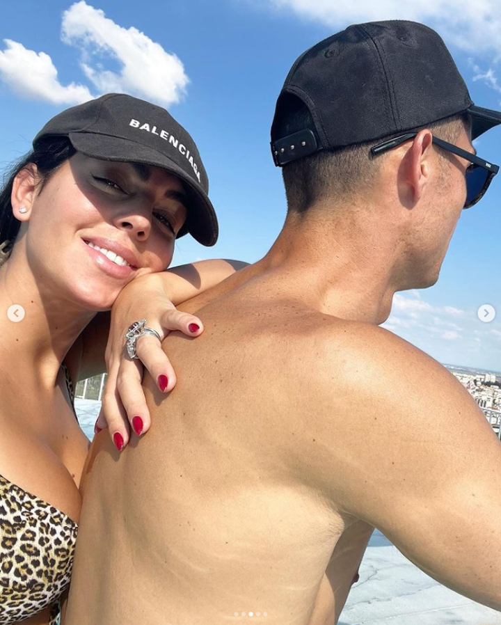 Georgina's latest post also included a selfie in a rooftop pool alongside Ronaldo.
