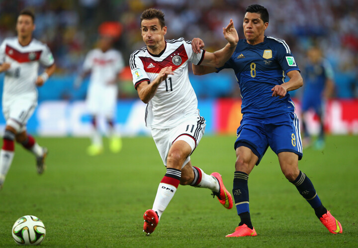 Klose holds the record for scoring the most number of goals (16) in World Cups. In 2014, he became the first player to appear in four consecutive World Cup semi-finals. Klose stayed on the pitch for 88 minutes and was then substituted by Mario Gotze.