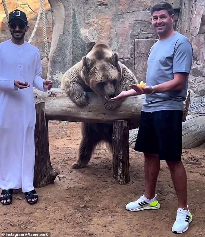 Steven Gerrard has become the latest sporting star to visit the controversial Fame Park zoo in Dubai, with the Liverpool legend having been recorded feeding a bear despite RSPCA warnings.