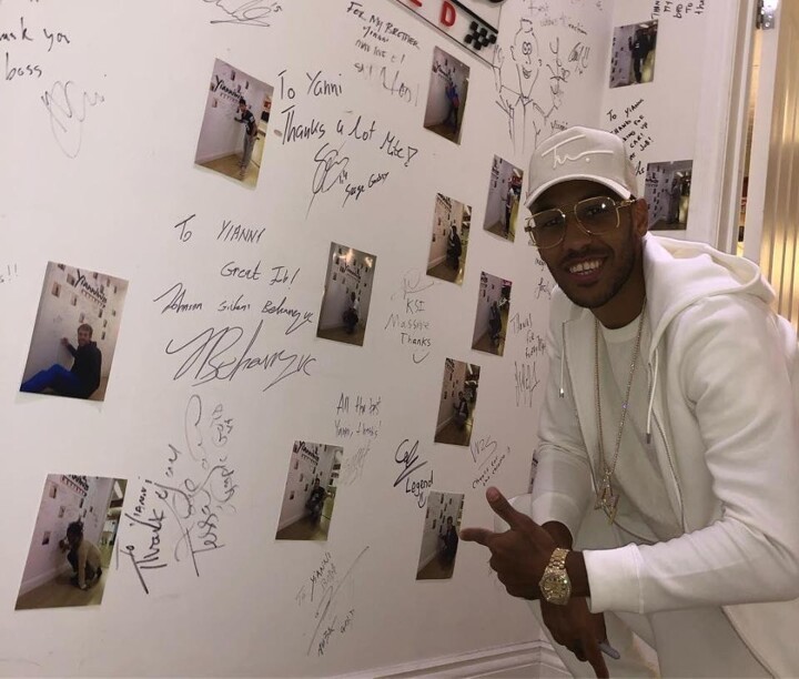 The wall of fame at his garage continues to grow, with a host of stars, including Manchester City's Sergio Aguero, adding their signatures and photos to the collage.