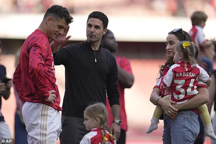 Xhaka, 30, struck twice for the Gunners as they saw off their Premier League season in style with a 5-0 hammering of Wolves at the Emirates on Sunday.
