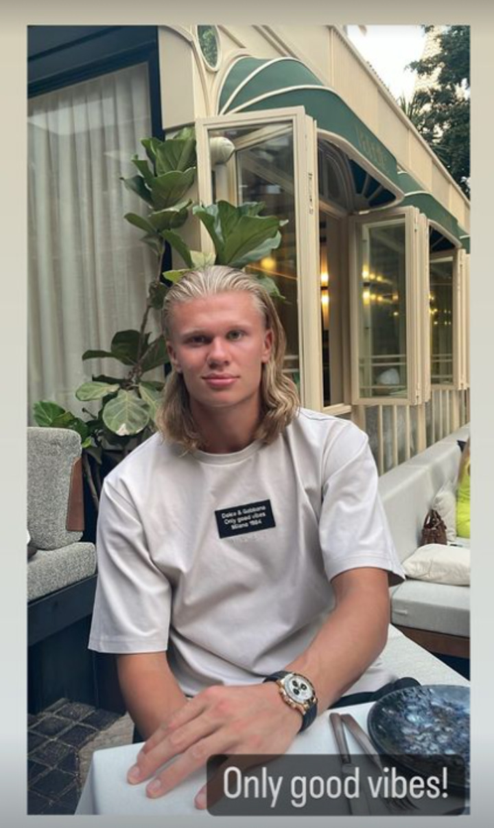 Haaland, 21, is on holiday in Marbella before linking up with the rest of the Manchester City squad next week.
