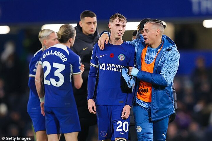 The former team-mates met on the pitch during City's trip to Chelsea, where the two English giants played out a thrilling 4-4 draw - with Palmer notching a late penalty.