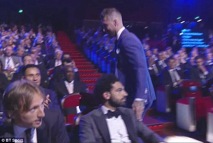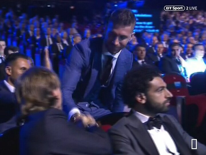 To make matters worse, the Real Madrid captain was sat directly behind Salah at Thursday's ceremony and Liverpool fans blew up across social media after TV cameras caught Ramos tapping their star player on the shoulder he injured.