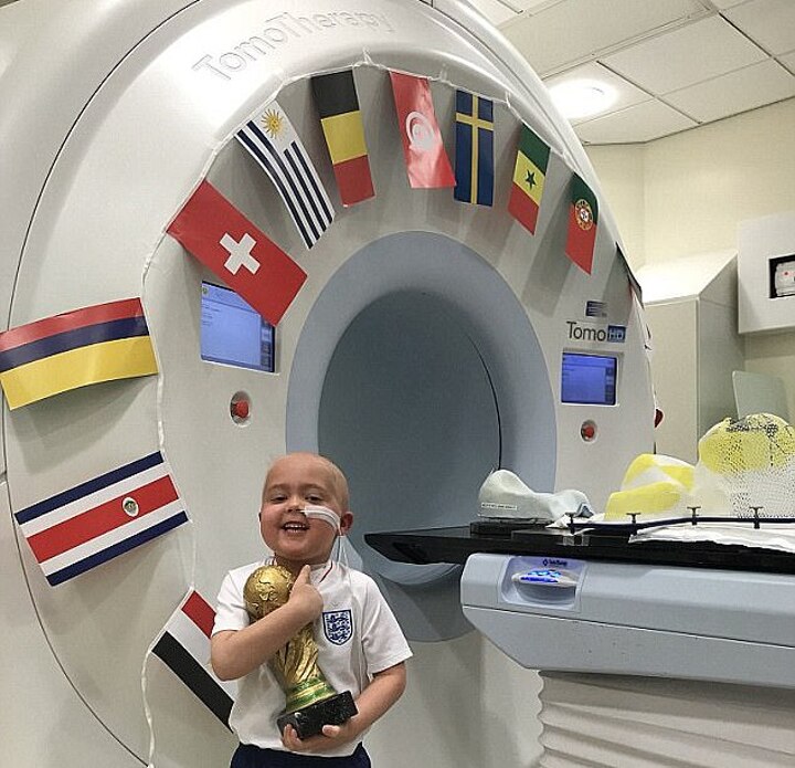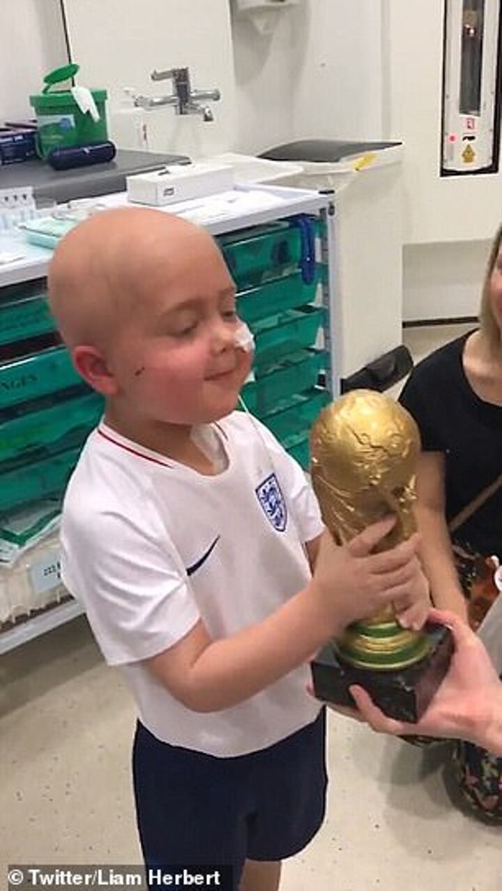 Ben's paediatric radiographer at the Queen Elizabeth Hospital in Birmingham shared a video of the boy receiving a replica World Cup trophy in July 2018