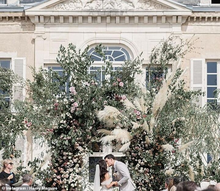 Harry and Fern, who looked stunning in a flowing princess-style gown and veil, shared a sweet kiss at the altar after being declared man and wife, with guests including fellow England star Jordan Pickford and his wife Megan in attendance.