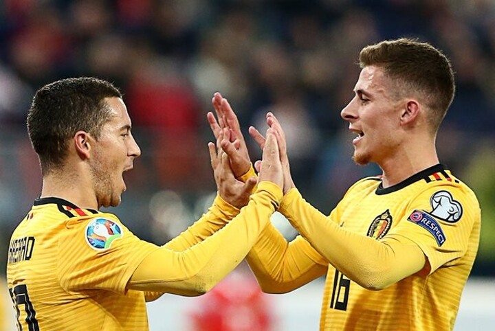 Two goals and a assist for Eden Hazard and a goal for Thorgan Hazard as Belgium and Russia qualified for the 2020 UEFA European Championship.