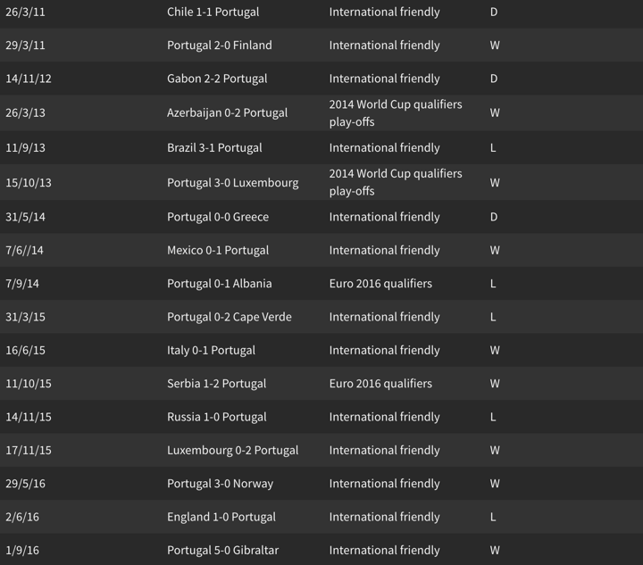 Portugal have also played 49 times without Ronaldo in this period. Out of this, they won 28, drew 11 times and lost on 10 occasions. Without their superstar, Portugal's win percentage is 57.14.