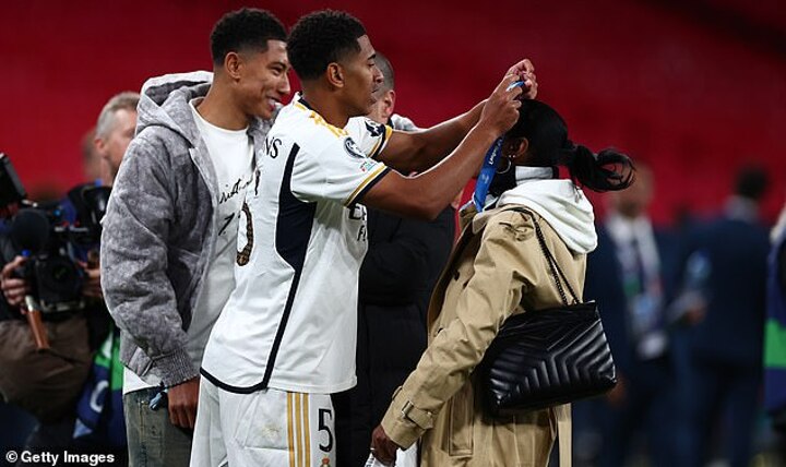 But as the Real Madrid players rushed onto the Wembley turf to celebrate a 15th Champions League title, Bellingham ensured it was his parents who were given the credit, including wrapping his most prestigious medal yet around his mother's neck.