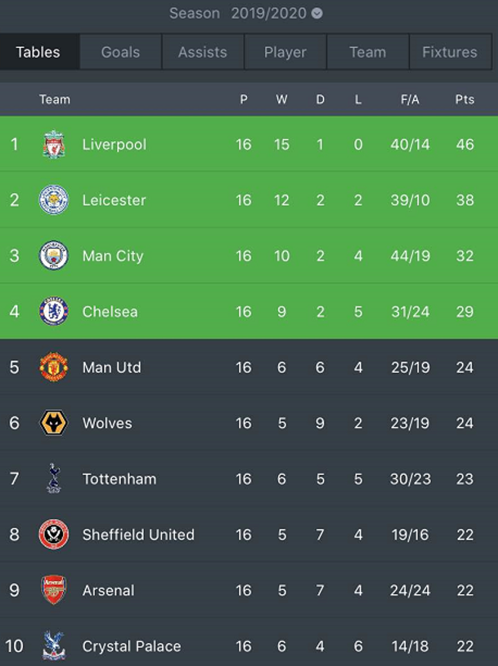 Here is today's Premier League standings.