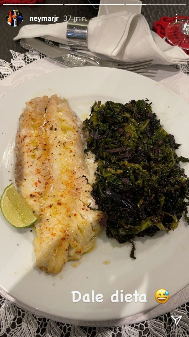 Neymar prefers to drink whey protein in the morning, before and after his workout. There are three fried eggs and spinach with slices of lean turkey for his breakfast.