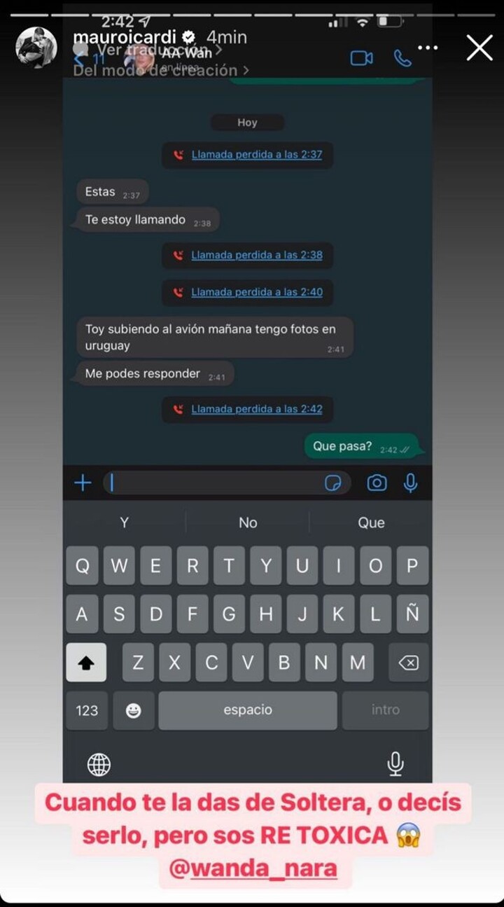 Through Instagram stories, Mauro Icardi brought to light the latest messages from Wanda Nara to the Galatasaray player. “ When you say you are single, or you say you are, but you are RE TOXIC ”, Icardi would write after showing the conversations with her ex-partner. And it is that a few days ago Wanda Nara surprisingly announced the end of her relationship with the father of two of her daughters, while Icardi would have tried to return to her.