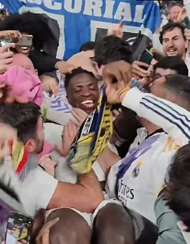 After the match, Vinicius Jnr was mobbed by fans at full time after he appeared to jump into the Madrid end to celebrate.