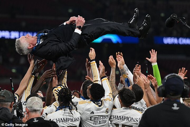 Madrid's players then found their manager, Ancelotti, and threw the Italian coach up into the air, after he had clinched his fifth Champions League title.