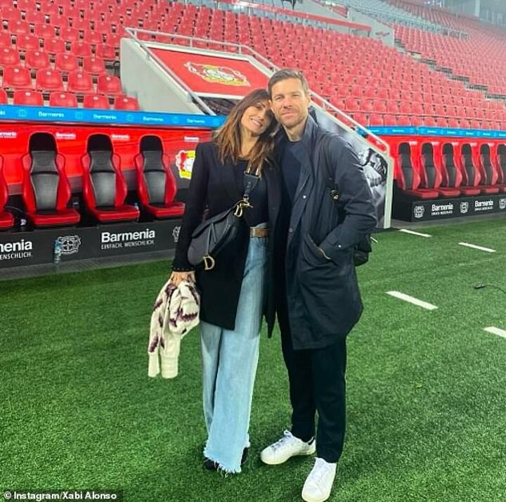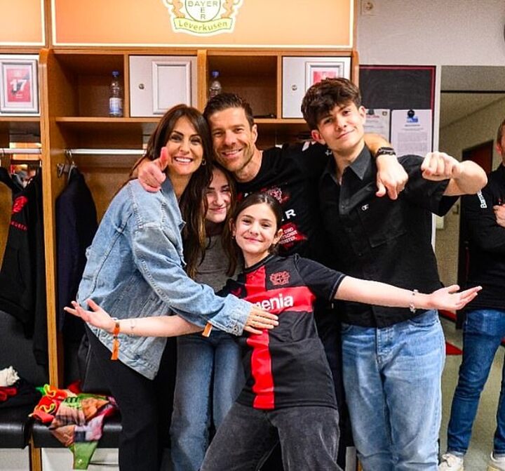 Xabi Alonso posted an Instagram snapshot with wife Nagore and their three children Jontxu, Ane and Emma, all smiling in the Leverkusen dressing room.