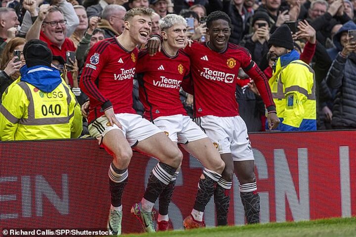 When Garnacho, Mainoo and Rasmus Hojlund perched together on a pitch-side hoarding after United scored against West Ham last month — payback for Mohammed Kudus’s celebration when he punished a rare Mainoo mistake in the reverse fixture in east London in December — the photo went viral.