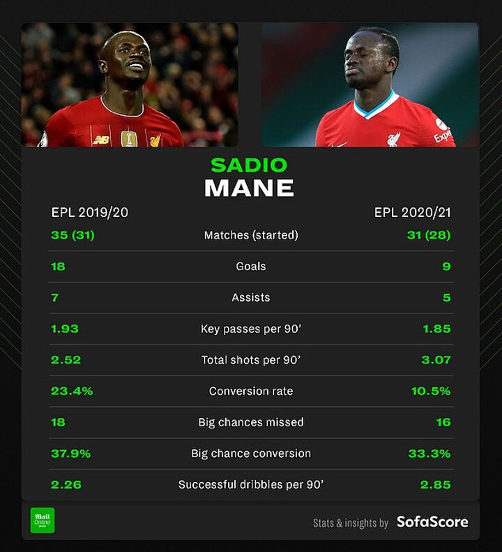 It doesn't stop there. Last season, as per Opta, Mane finished the campaign with a 'big chance total' of 29, in which 11 were scored.