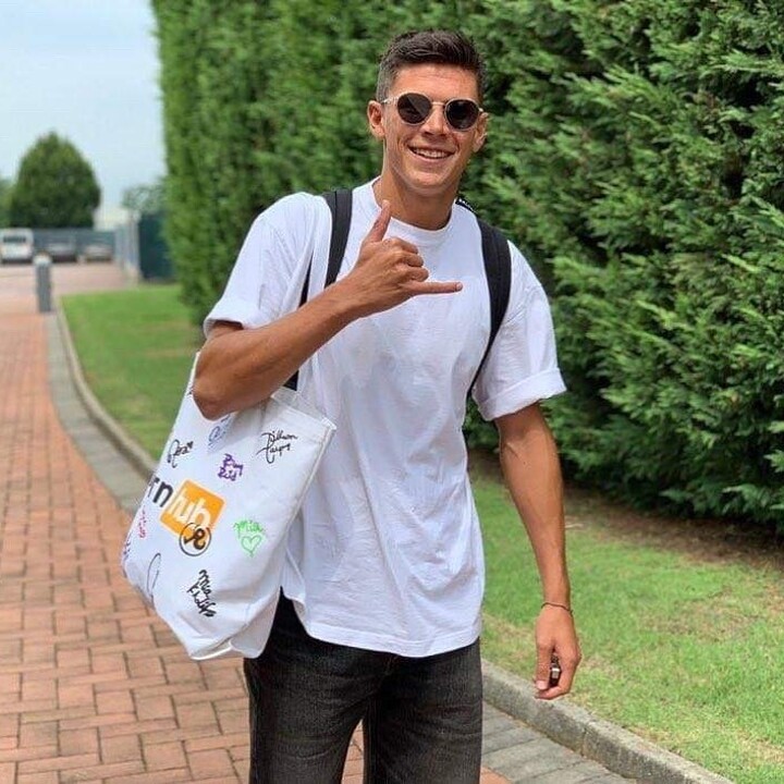 Atalanta’s midfielder Matteo Pessina arrived to pre-season today wearing a Pornhub bag, which has been signed by some pornstars including Mia Khalifa.