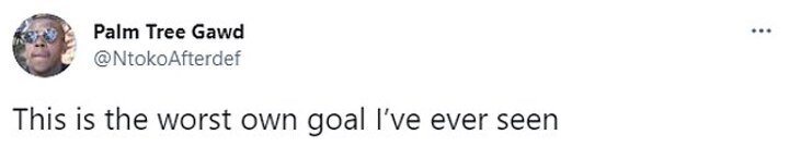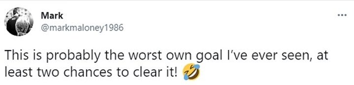 One supporter wrote: 'This is probably the worst own goal I've ever seen, at least two chances to clear it!'