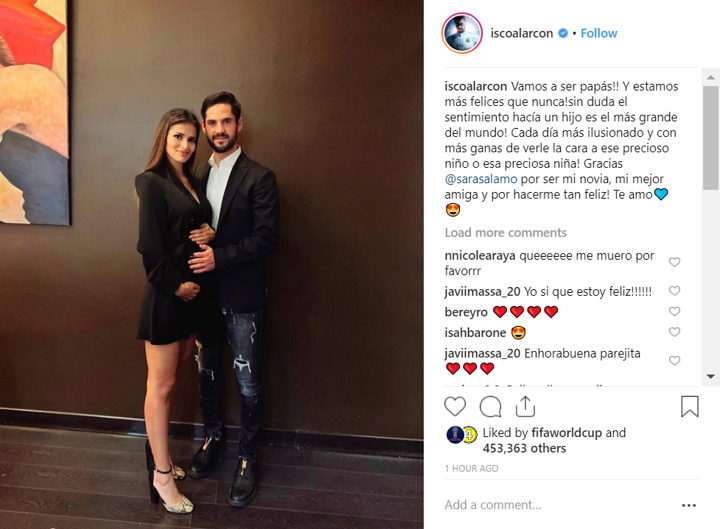 There has been a piece of happy news for Isco at the end of 2018, with the Real Madrid player set to become a father for the second time.