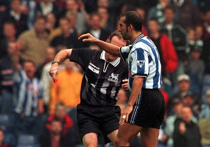 The most famous incident of a player in the Premier League clashing with a referee came when the fiery Paolo Di Canio shoved Paul Alcock following a red card incident against Arsenal.