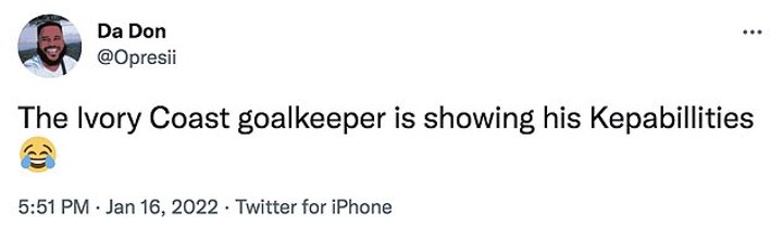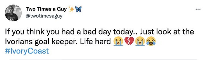 Another added: 'If you think you had a bad day today.. Just look at the Ivorians goal keeper. Life hard'.