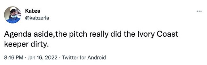 Another added: 'Agenda aside,the pitch really did the Ivory Coast keeper dirty.'