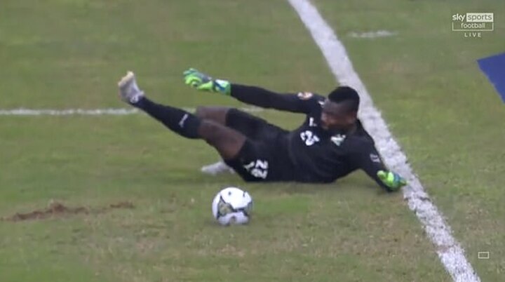Ivory Coast were 2-1 up in the African Cup of Nations clash when the incident took place. There were just seconds left on the clock when the ball was headed back to the goalkeeper.