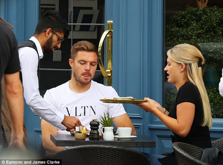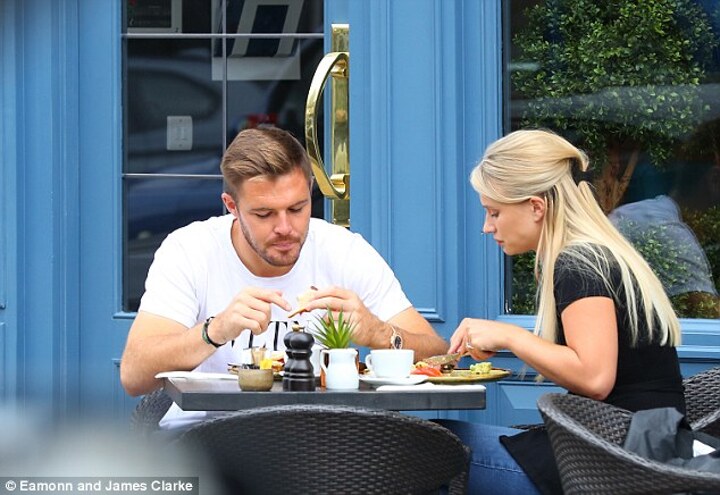 A day after his Stoke side lost heavily to Leeds, Jack Butland enjoyed a spot of lunch with his fiancee Annabel Peyton amid interest from Chelsea.