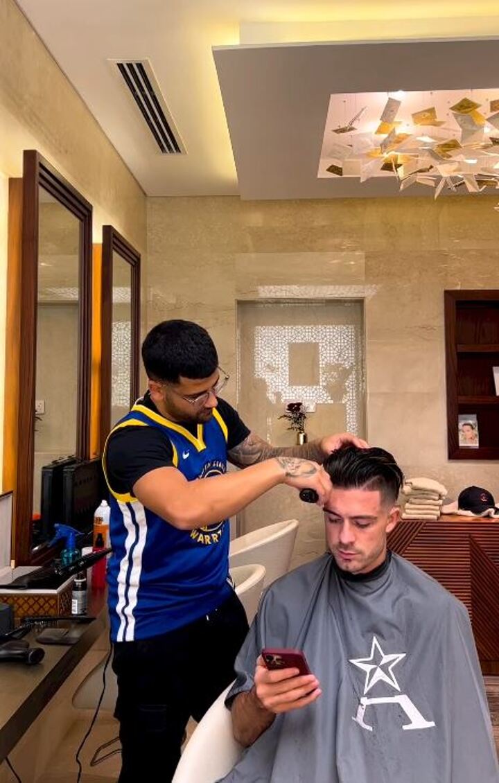 In the video, Grealish can be seen scrolling through his phone as his hair is meticulously worked on.