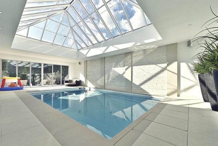 The property was recently renovated by interior designer Louise Bradley, and has four huge bedrooms in the main house, with two additional rooms and a shower in the guest wing above the triple garage.
