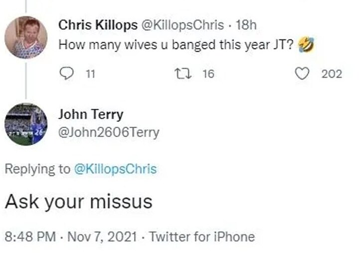 The former Chelsea captain responded saying: 'Ask your missus'.
