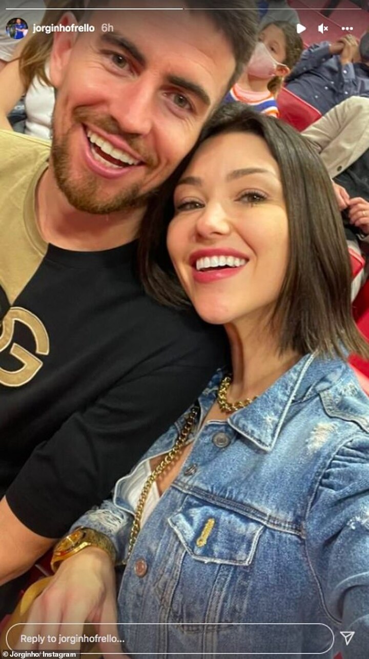 Jorginho himself also shared a selfie with his beautiful girlfriend as they snuggled up at what looked like a sports match.