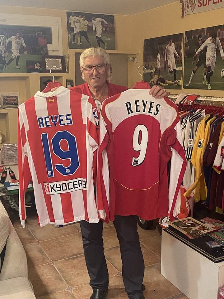 Back at Reyes’s home, each pair of boots he used in his career are pristinely lined up against a wall. The number of shirts hung is in the dozens, including the one worn in Arsenal’s final game at Highbury against Wigan.